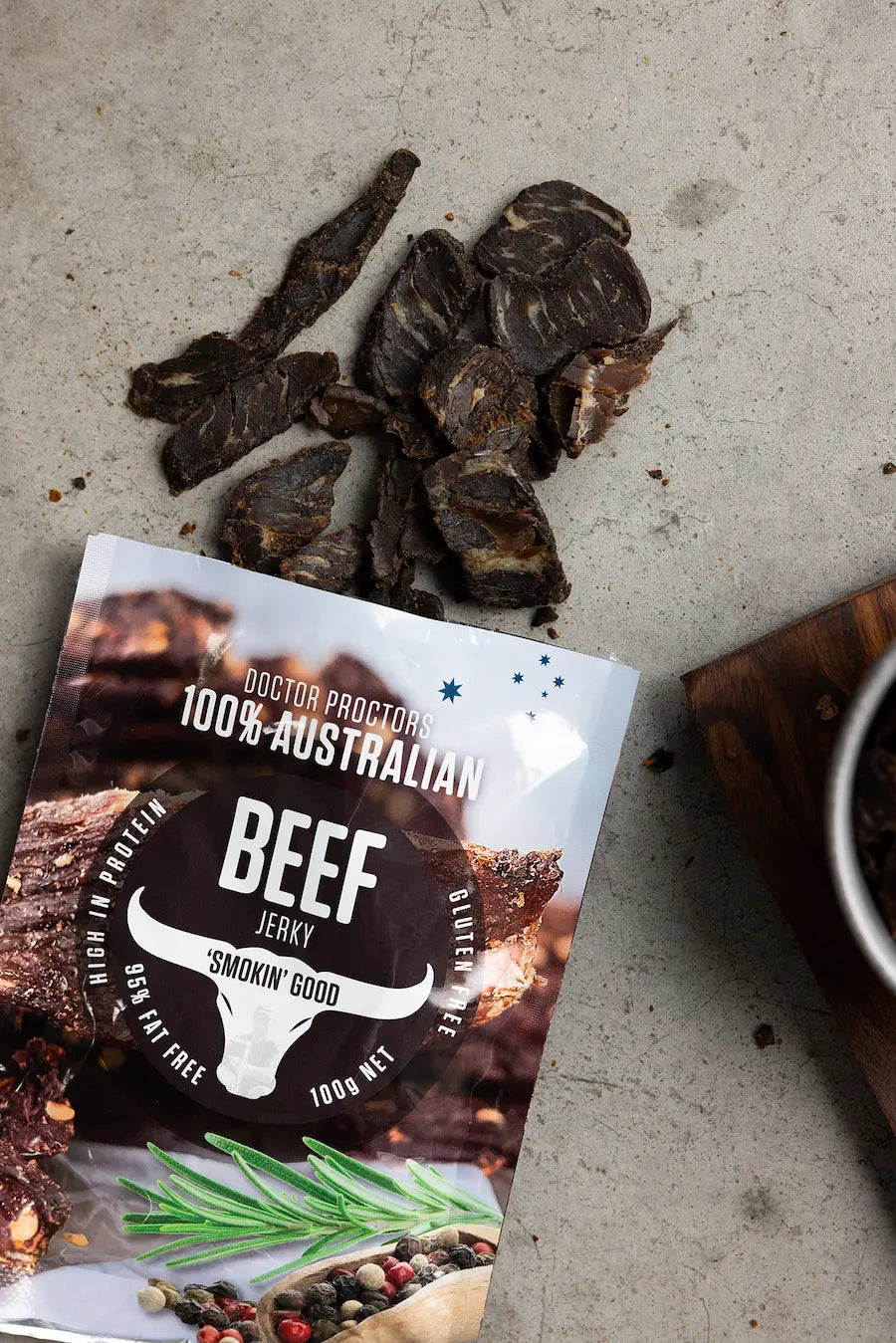 Sample the entire Doctor Proctors range with free shipping. Includes every flavour of beef biltong, beef jerky, and beef sticks. Our best value for money bundle!
